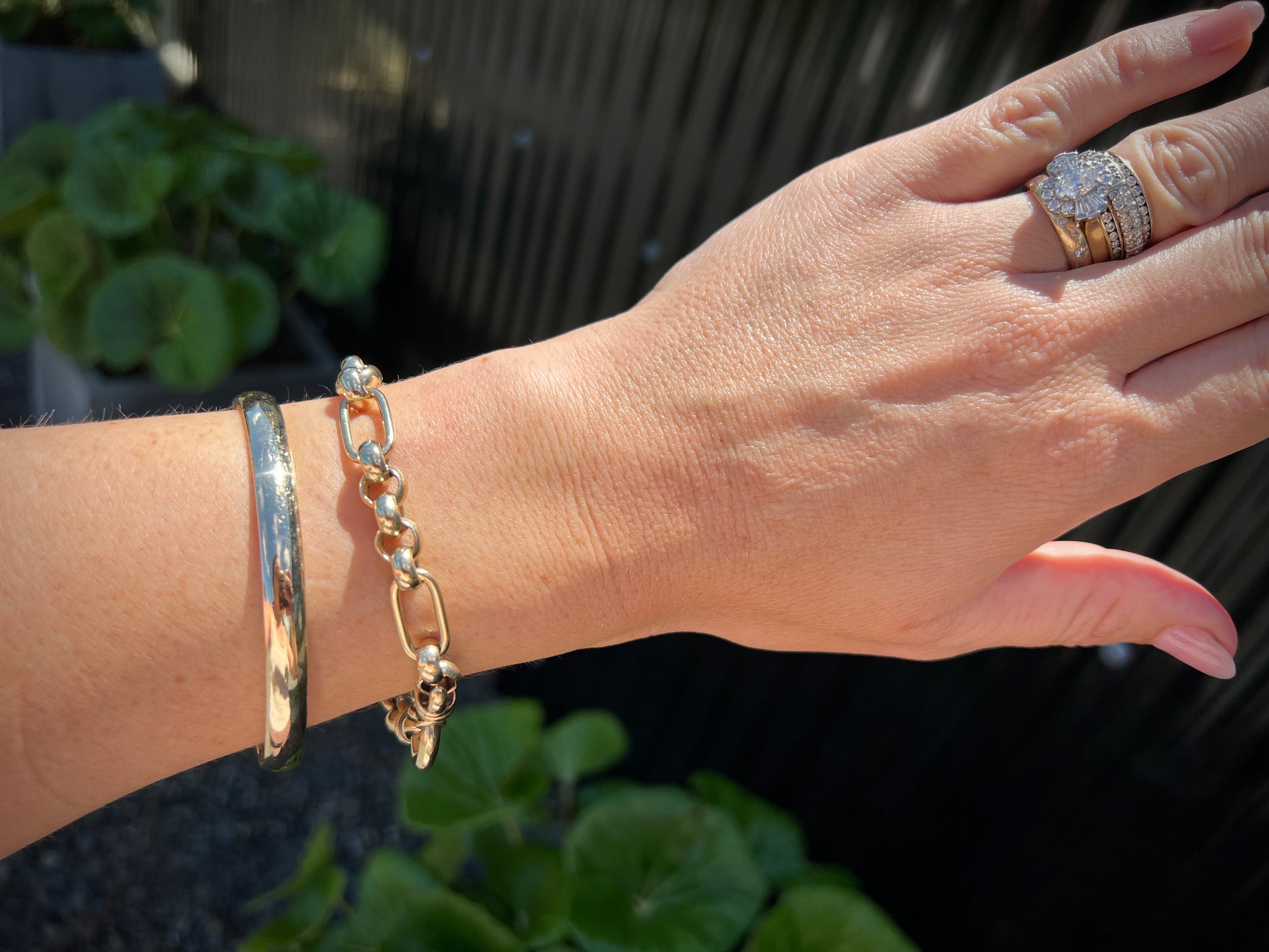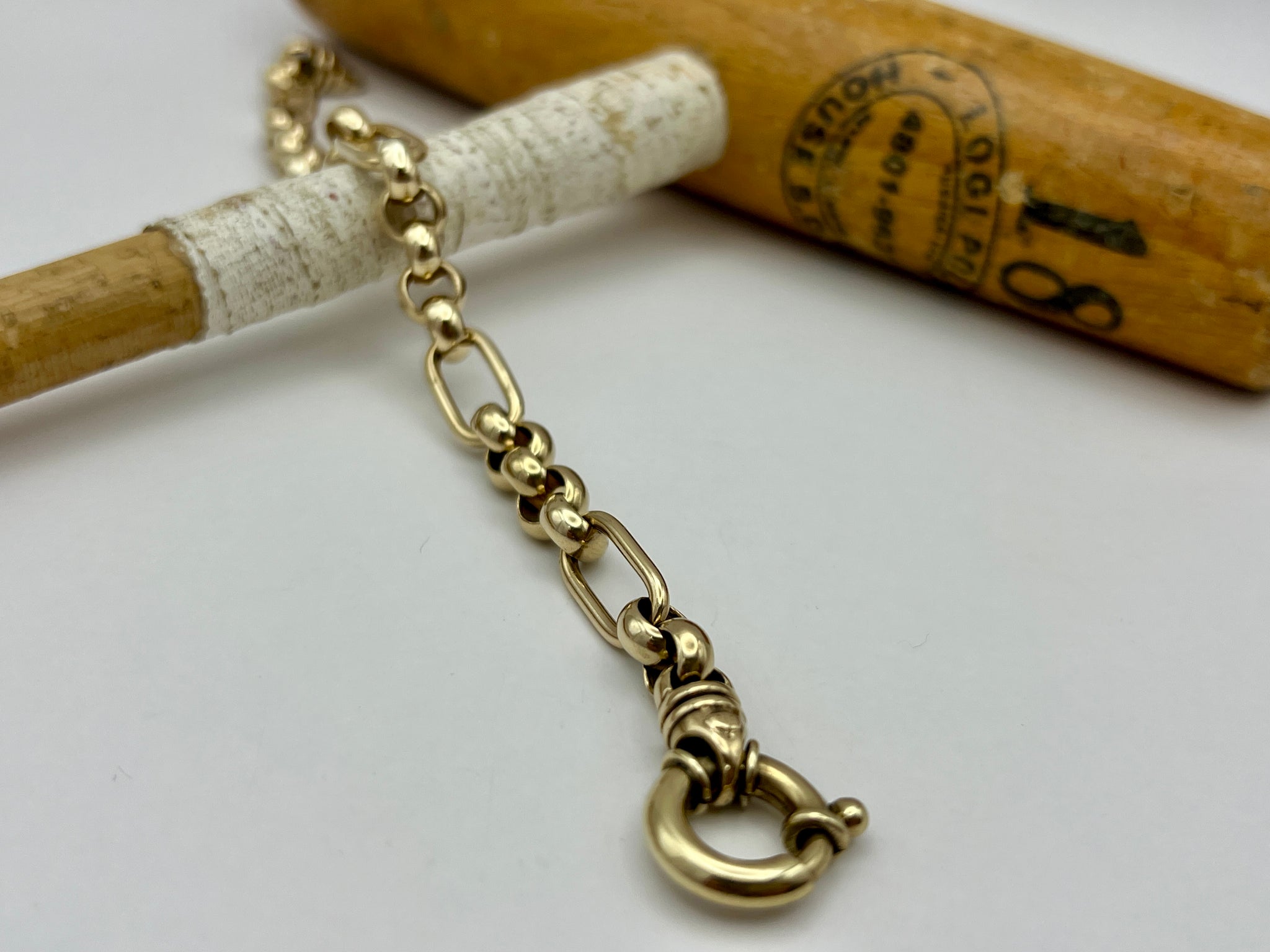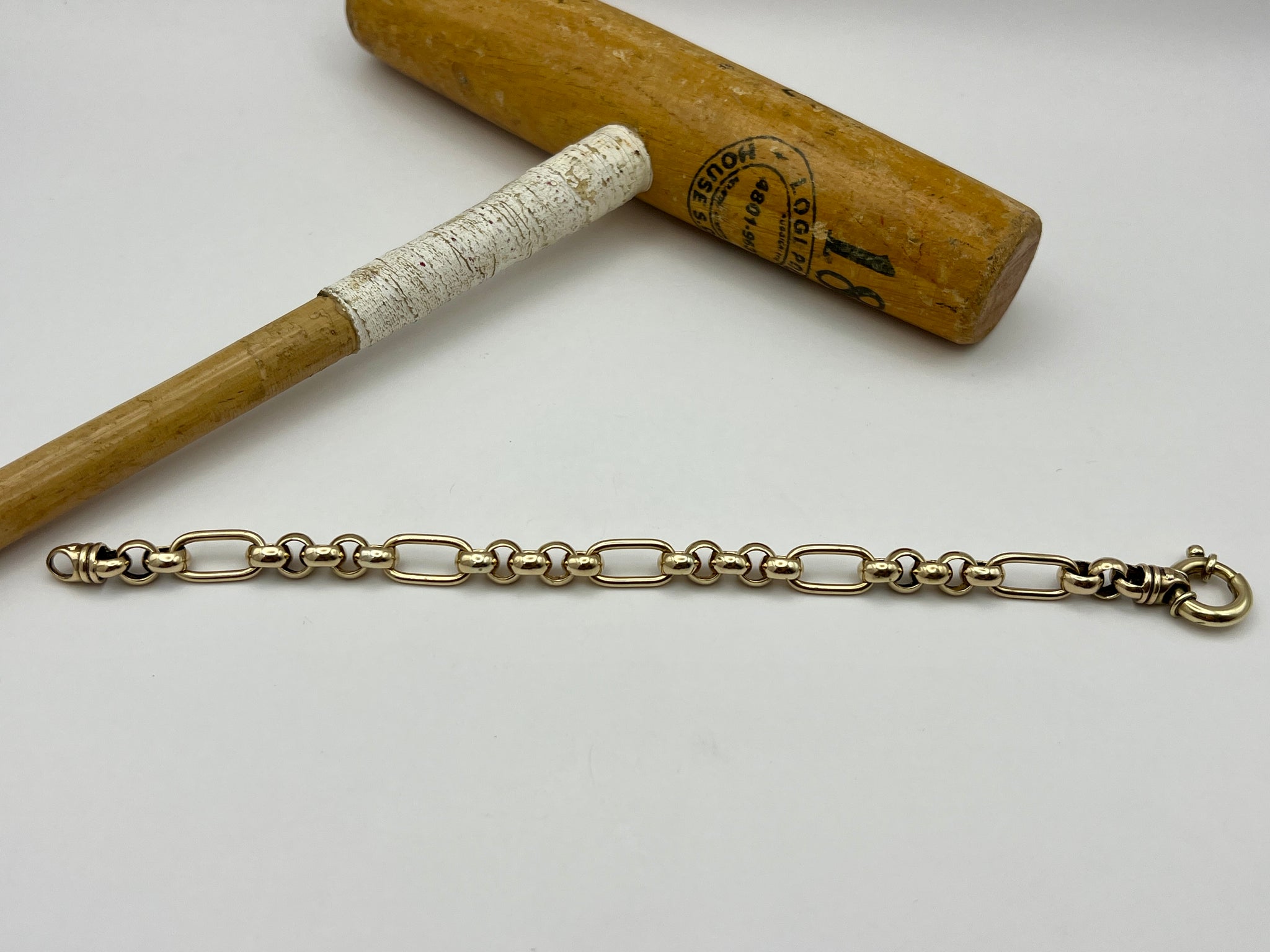 9ct Yellow Gold Oval and Belcher Link Bracelet | Preloved