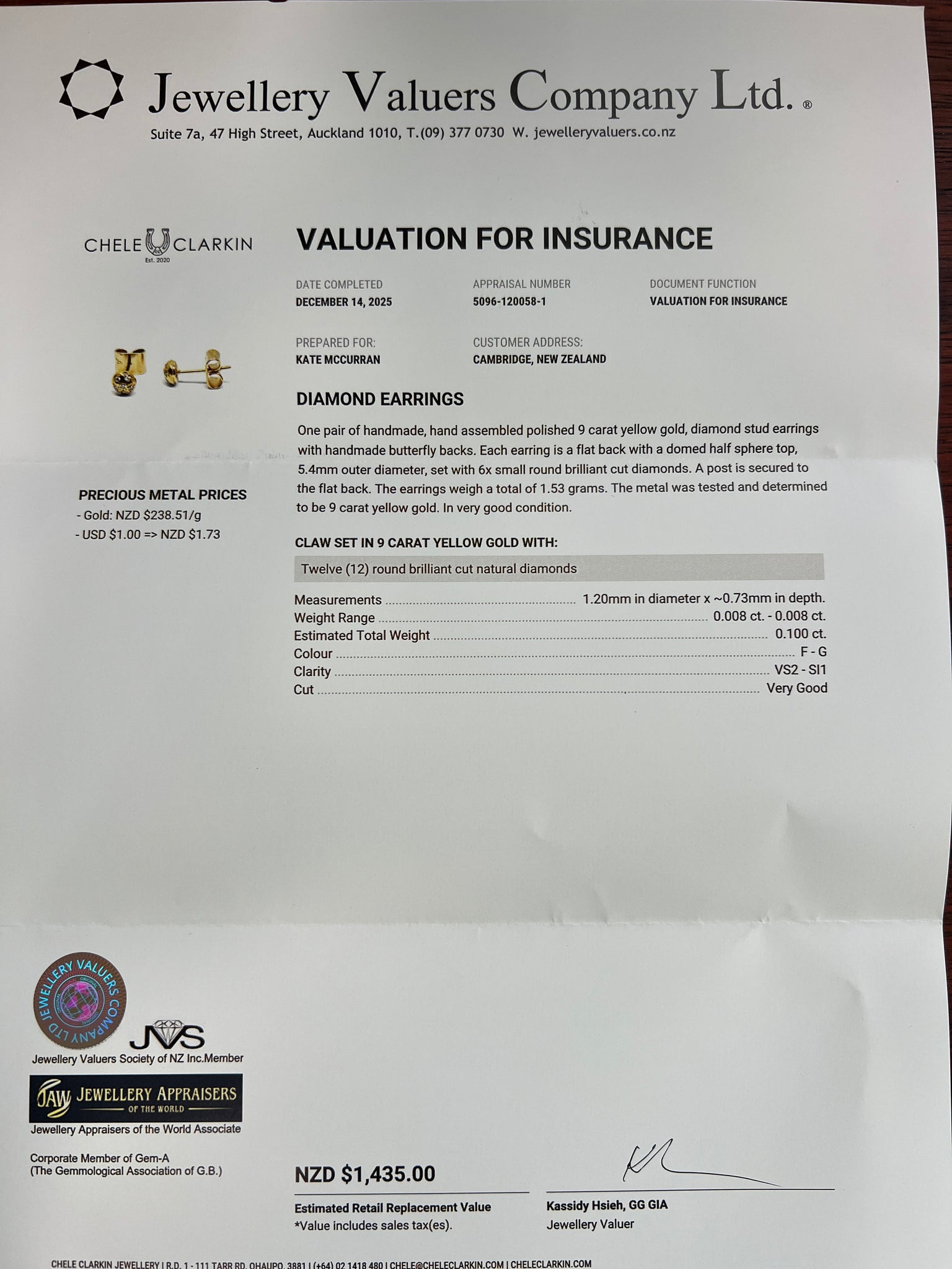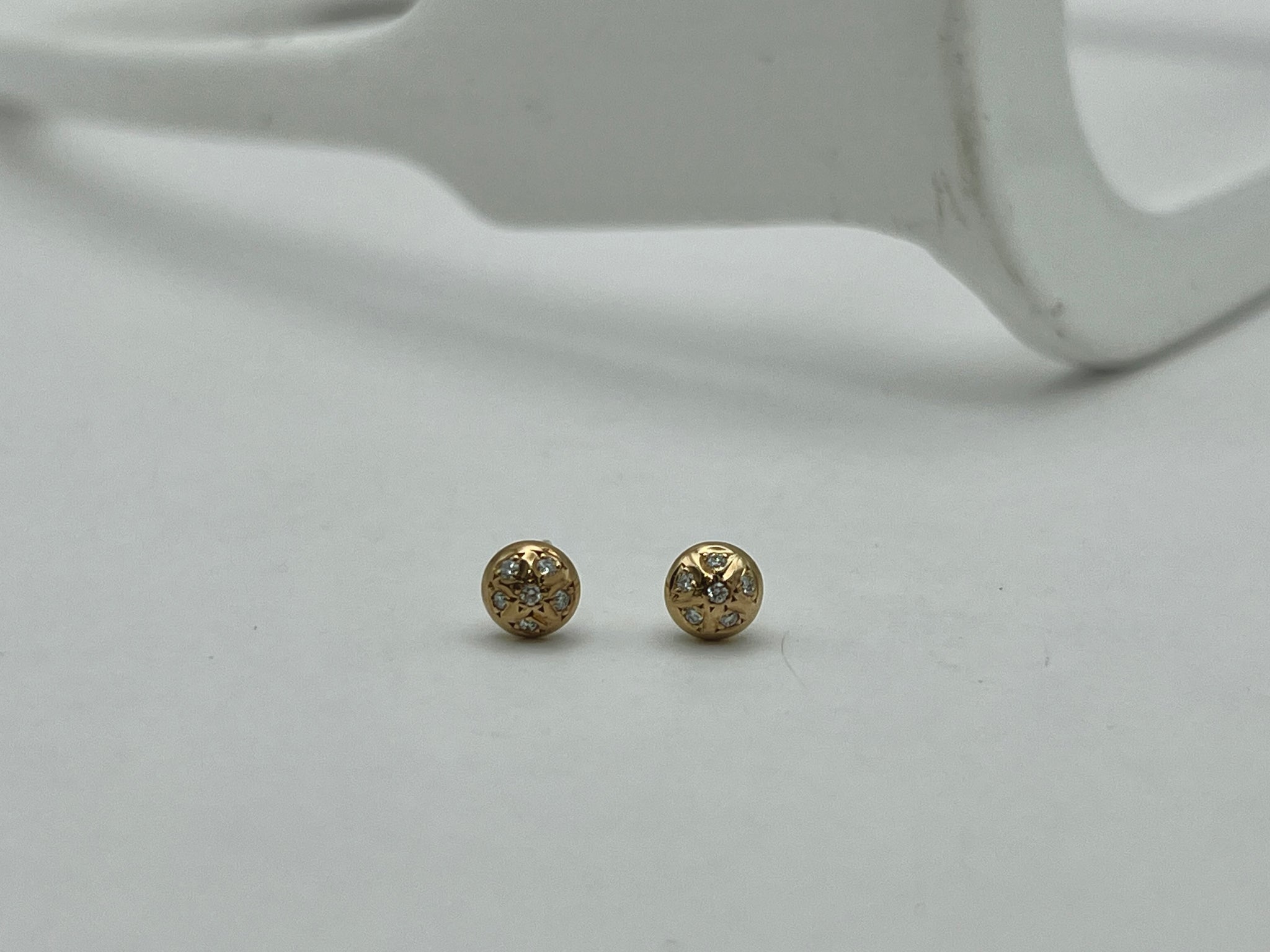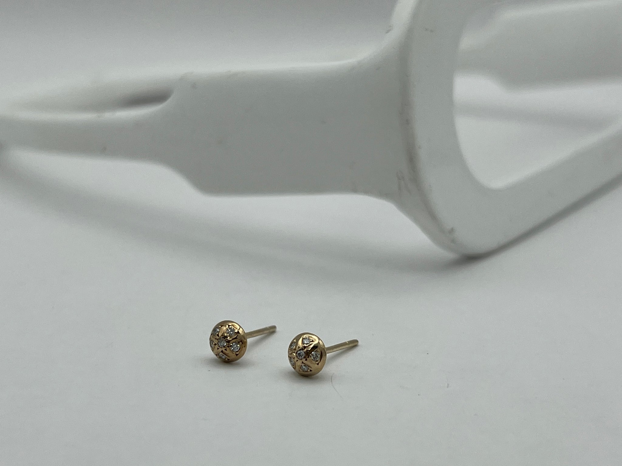 9ct Yellow Gold Dome Earrings with Diamonds | Preloved