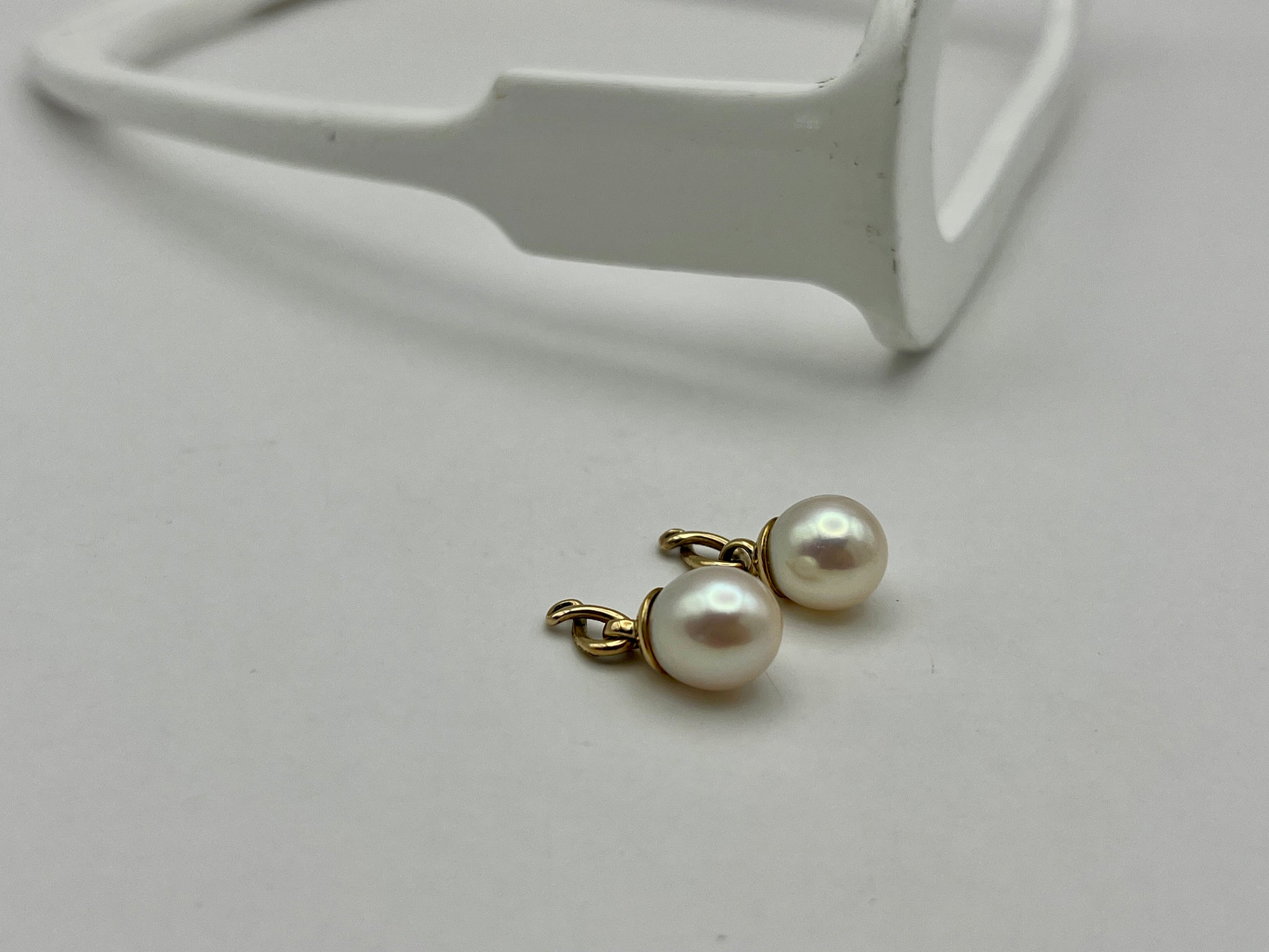 - Freshwater pear drops that are added to existing earrings by threading the earring post through the bale on these drops